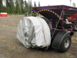 12. Если упаковку/плющение по какой-то причине придется приостановить, достаточно остановить вальцовую мельницу Murska Мурска. Давление тормозов трогать не надо. Когда упаковка Murska Мурска опять продолжится, получится единый и ровный рукав без провисов или слишком толстых мест. 13. Когда работа по упаковке заканчивается, сначала закрываете подачу зерна на мельницу Murska Мурска, оставшееся на вальцах зерно пропускается через вальцы, и останавливаете мельницу Murska Мурска. Спускаете давление в тормозах, и трактор медленно проезжает вперед на 2-3 м, чтобы высвободить пустой конец рукава. 14. Рукав Murska Мурска отрезается, и пустая часть рукава Murska Мурска плотно скручивается, например, на доску в сторону заполненного рукава. Если в конце рукава останется воздух, можно проделать в рукаве маленький надрез и выдавить воздух. Надрез сразу заклеивают поставляемым с рукавом скотчем для заплат.